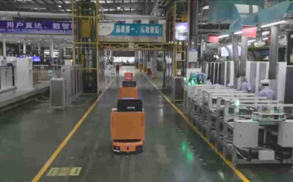 为车载冰箱物流配送打造的智能解决方案,,,包含产中物流通过潜伏举升AMR搬运至线边,,,产后成品物流智能仓储,,,流程包含产中物流智能齐套入库,,线边安灯叫料AMR智能配送至线边,,成品入库、、、出库,,,,通过无人堆高车机器人,,智能仓储管理替代人工作业管理,,实现更高存储、、更高效率、、、更具柔性化的解决方案。。。。